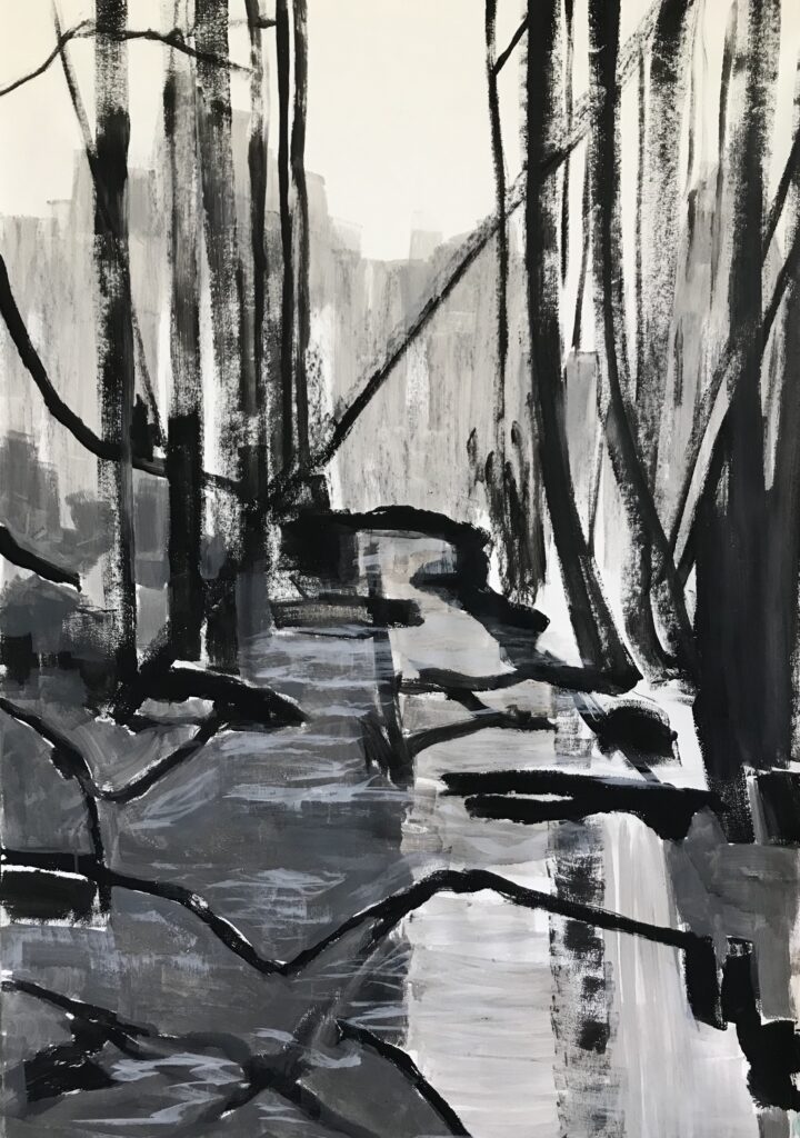 2019Acryl, Pigmente, Asche, Papier auf Leinwand126 x 105